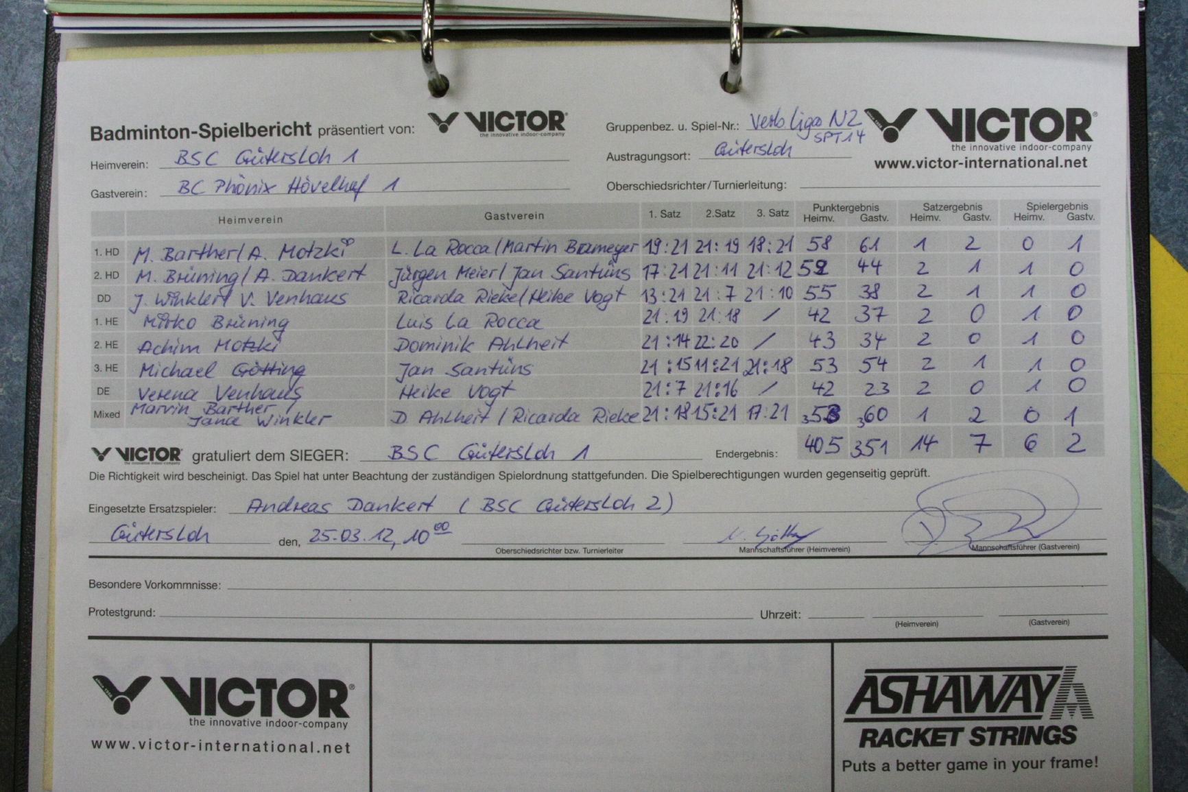 BSC 1 besiegt BC Phönix Hövelhof 1 mit 6:2 u. sichert 4. Tab-Platz